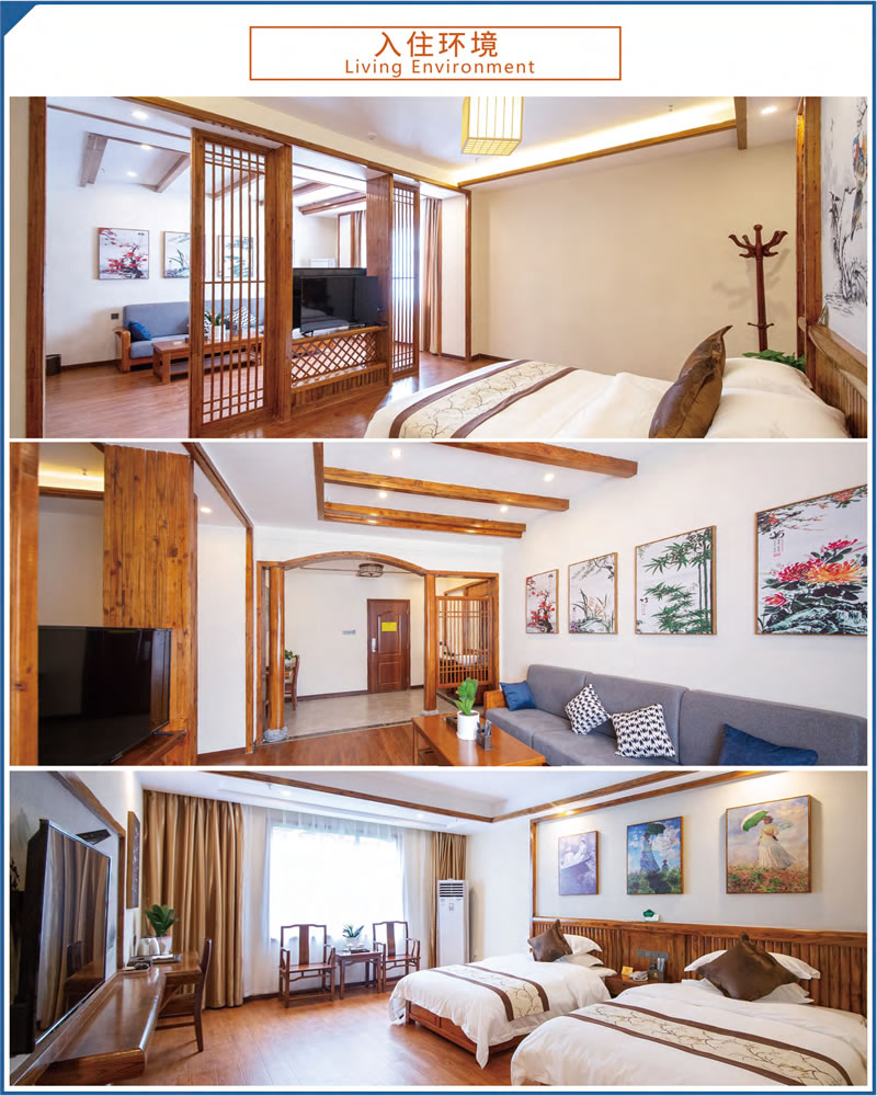 這里設(shè)施完備,環(huán)境優(yōu)美。占地70余畝,建筑面積23000余平方米,由多座湘西民族風(fēng)格的園林建筑群組成。院外依山傍水,院內(nèi)綠樹成蔭,環(huán)境優(yōu)美怡人。現(xiàn)有客房4棟,各類客房279間,中西餐廳可滿足500人同時(shí)就餐。大小多功能會(huì)議室、棋牌室、健身房、藍(lán)球場、羽毛球場等設(shè)施均有配備。