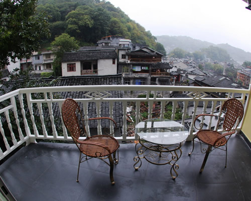 如果你選擇半山別院,在客房的觀景陽(yáng)臺(tái)上,你可以俯瞰大半個(gè)古城,湘西晚清古建筑群,駐立江邊的萬(wàn)民塔。