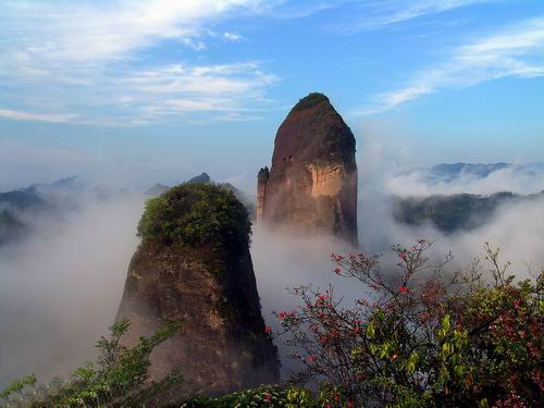 | 莨山,位于湖南省新寧縣境內(nèi)。南與桂林相連,北與張家界呼應(yīng),是國(guó)內(nèi)最為典型的丹霞地貌風(fēng)景區(qū),是國(guó)家重點(diǎn)風(fēng)景名勝區(qū),又是國(guó)家地質(zhì)公園,總面積108平方公里,轄紫霞峒、 扶夷江、駱駝峰、牛鼻寨、八角寨五大景區(qū),地質(zhì)結(jié)構(gòu)奇特,山、水、林、洞渾然一體。境內(nèi)有形神兼?zhèn)涞膶④娛、惟妙惟肖的駱駝峰、鬼斧神工?天下第一巷"、地造天設(shè)的鯨魚鬧海、氣勢(shì)磅礴堪稱亞洲第一的天生橋、高聳入云而又十分逼真的辣椒峰,這便是嘆為觀止的莨山六絕,這是大自然對(duì)莨山的恩賜,每一絕都舉世無(wú)雙。莨山還生長(zhǎng)繁衍著銀杉、珙桐、華南虎、云豹、靈貓、大鯢等珍稀動(dòng)植物,也為莨山的天然景色增添了無(wú)限靈動(dòng)與生氣。這里出土有10萬(wàn)年前的獼猴頭骨化石,有4500年前的新石器文化遺址,有清化農(nóng)民起義的寨堡,有晚清重臣劉坤一、劉長(zhǎng)佑、江忠源的宗祠、墓葬,有異彩紛呈的民族風(fēng)情,有膾炙人口的華采詩(shī)賦,明代縣人陳永猷留下了"夫夷(新寧古稱)勝景天成就,攝杖歸來(lái)入夢(mèng)頻"的美譽(yù),著名詩(shī)人艾青留下了"桂林山水甲天下,莨山山水賽桂林"的喟嘆。