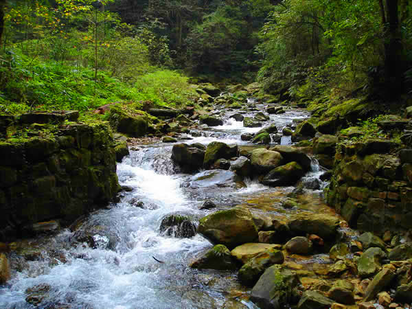 在黃石寨與袁家界之間有一道長長的峽谷將兩山隔開,峽谷中有一條小溪水,溪水從“天下第一橋”下面淙淙流過,這便是有名的“沙刀溝”。