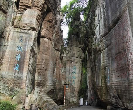 清嘉慶年間辟有洗心池。“不二門”如斧斫神劈,為石林天成,石林壁上鐫滿歷代文人的詩詠。這里古柏參天,藤蘿倒掛,環(huán)境幽美。有壁石如書的萬卷書者,有嵐霧束腰的七級青石培英塔。凝神盤坐的南海觀音是一塊天然造型的巨石,惟妙惟肖。觀音巖周圍,環(huán)繞著具有明清風(fēng)格的地藏庵、嵩山堂、水府閣等建筑物,布局靈巧緊湊,主題鮮明,因勢造景。景點(diǎn)間曲徑迂回,迷趣深奧,稱八陣圖。景區(qū)內(nèi)的河灘上有兩處溫泉,氤氳縈繞,水溫適宜(41℃),水質(zhì)良好,能治療多種疾病?h城人民經(jīng)“不二門”前往溫泉就浴者絡(luò)繹不絕,現(xiàn)又增建了石牌坊和民俗博物館。