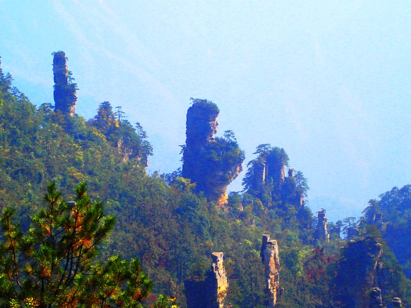 下 午:可選擇步行(步行下山一般時(shí)間為2小時(shí)左右)或者乘坐天子山索道(索道票72元/人自行購買)下山,游覽巧奪天工的--【十里畫廊】,可以選擇步行或者乘坐觀光小火車游覽十里畫廊(觀光小火車票單程38元/人自行購買),沿途欣賞天臺(tái)三姐妹峰、向王觀書、黃昏戀、壽星迎賓、采藥老人、錦鼠觀天、猛虎嘯天等景點(diǎn);