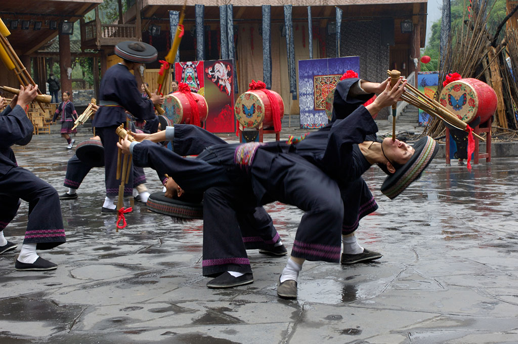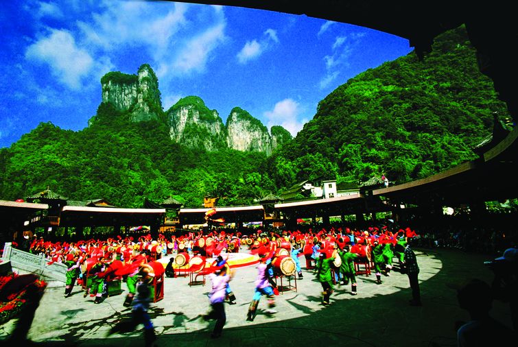 吉首市德夯風(fēng)景區(qū)地處云貴高原邊緣,位于湘西土家族苗族自治州首府吉首市西郊,距吉首市24公里。德夯旅游區(qū)以矮寨為中心,東到堂樂洞、西到大龍洞,南從武山、蓮臺山開始,北到流紗瀑布(全國落差最高的流紗瀑布和瀑布群),小龍洞,總面積約190平方公里。自矮寨鎮(zhèn)洞溪上行4公里至德夯苗寨,沿岸筒車、水輾、古渡、小舟,伴以苗家吊腳樓,一派田園詩情。九龍溪穿寨而過,四周山色清幽,懸崖如削......在青山綠水間,點(diǎn)綴著一幢幢灰瓦石基吊腳樓,一條條光滑的石板路,一座座精巧的石拱橋,一群群赤足紅裝的浣紗苗女。還有那古老的石碾和筒車,在水力的帶動(dòng)下,咕咕嚕嚕、咿咿呀呀,不知疲倦地旋轉(zhuǎn)著,一派田園詩情,這就是德夯苗寨。由于這里是純苗區(qū),苗族人民的風(fēng)俗習(xí)慣對德夯影響很大,苗族人民的四月八、跳鼓舞、三月三歌會(huì)、趕秋、接龍、推牛以及苗嶺情歌,無不吸引著中外游客。因此,古樸優(yōu)雅的苗族風(fēng)情又成為德夯人為景觀的特色。